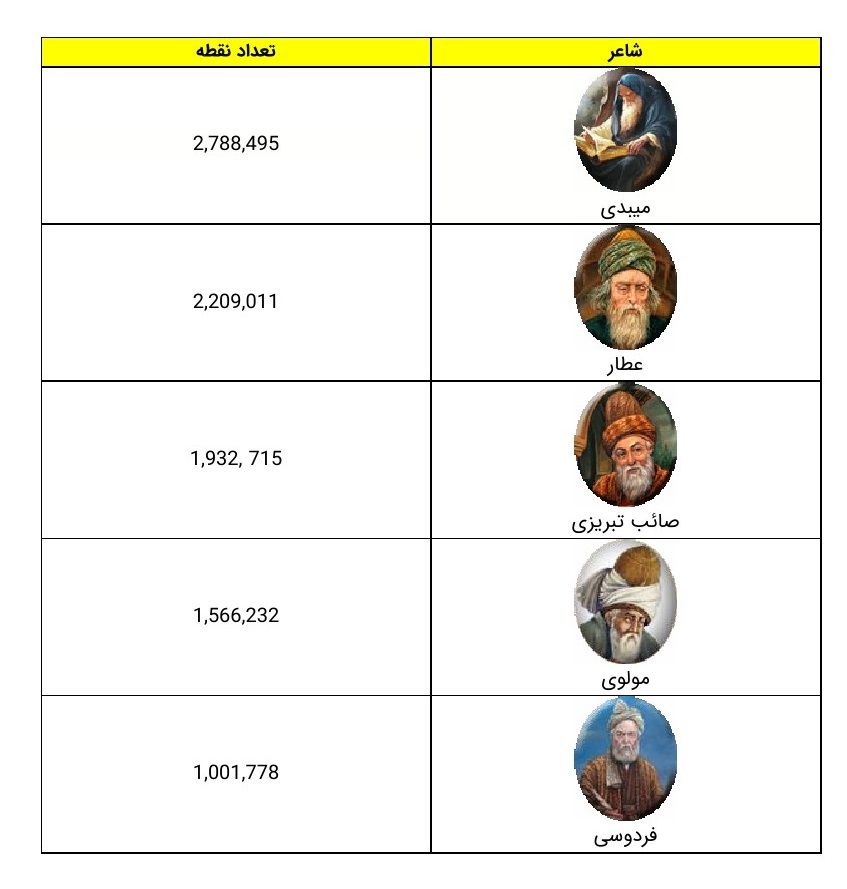 کدام یک از اشعار بیشترین تعداد نقطه را دارند؟