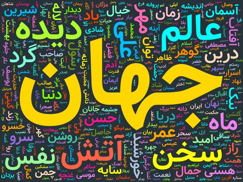 در تصویر زیر میتوانید ابر کلمات اسامی ایرانی که در اشعار گنجور آماده است را مشاهده کنید :