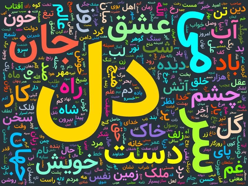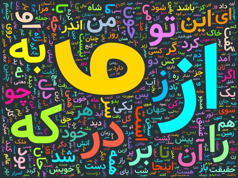 اگر ابر کلمات تمام اشعار فارسی رو ترسیم کنیم نتیجه به صورت زیر میشود :