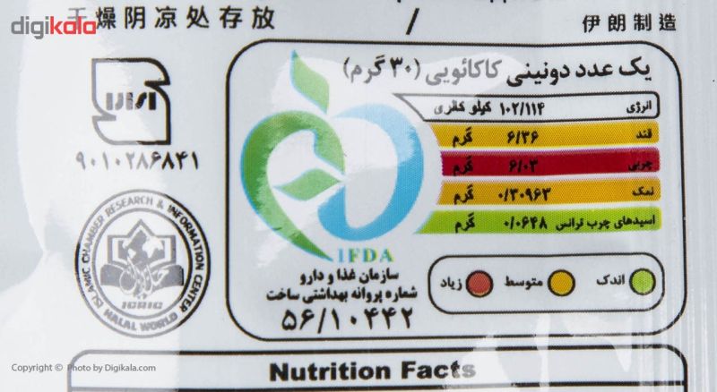 این قیمتش ۱۵ هزار تومن بود و ۱۵۰ گرم وزن داشت و توی هر بسته حدودا ۱۴-۱۵ تا دونه کوکی وجود داشت که هر کوکی هم ۴۰ کیلوکاری انرژی داشت. بد نبود ولی قیمتش نسبت به حجمش زیاد بود.