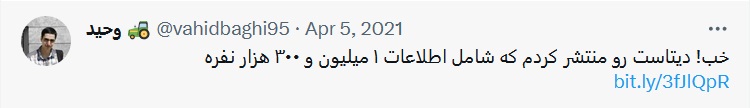 اولش فقط با اکانت خودم داشتم دیتا رو جمع میکردم، اما به مرور اکانت ها رو زیاد کردم و از یه جایی به بعد یه سوراخی پیدا کردم که میتونستم مفتی و راحت کد دعوت پیدا کنم و اینجوری شد که ۶۵ تا اکانت ساختم. جمع آوری دیتا تموم نشده بود ولی انقدر دوست داشتم که زودتر این دیتاست رو منتشر کنم که ۱۶ فروردین ۱۴۰۰ یه توییت زدم و گفتم که اطلاعات ۱.۳ میلون نفر رو در kaggle منتشر کردم :
